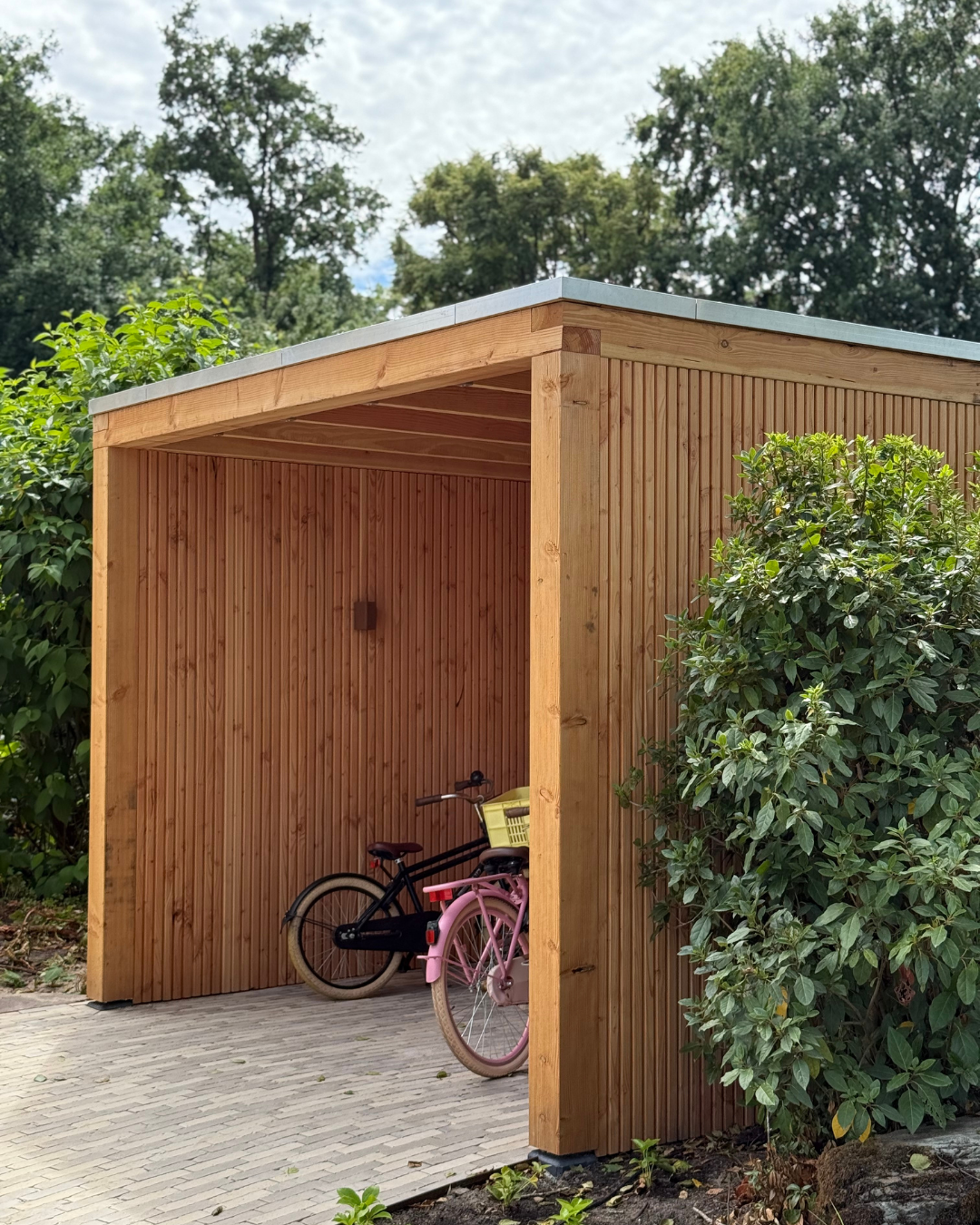 Een fietsenoverkapping voor vier fietsen, met oog voor detail.